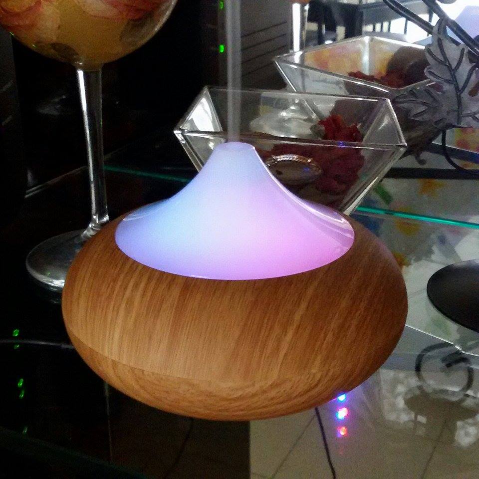 Trovo delizioso questo diffusore di fragranze in tutto il suo aspetto! Lo trovo delizioso anche solo da usare come arredamento, l'accostamento tra legno e bianco mi piace davvero troppo da abbinare nel mio salotto. E' davvero molto semplice da utilizzare: basta svitare il coperchio, riempire il misurino, in dotazione nella confezione, con dell'acqua corrente e versare nel diffusore facendo attenzione a non far entrare in contatto con l'acqua, la fessura dell'aria. Aggiungere qualche goccia di olio profumato o olio essenziale e richiudere il tutto. Attaccare lo spinotto e via con il profumo i giochi di colore! Se volete stupire i vostri ospiti, questo diffusore e' super consigliato.